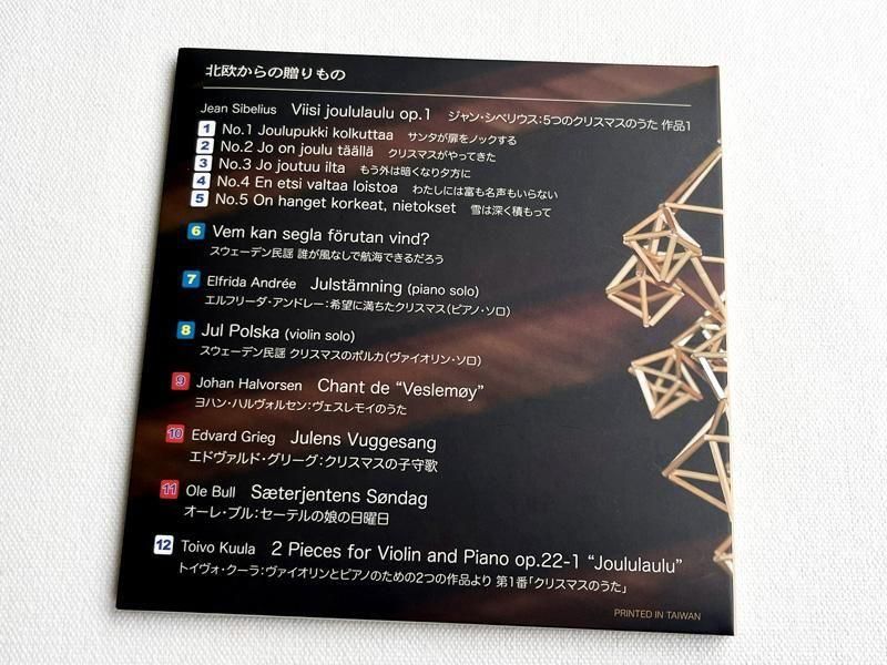 フィンランドのシベリウス・アカデミーで出会い結成されたヴァイオリンとピアノによるユニット"Duo Unikeko"。彼女らが2020年、コロナ禍においてそれぞれ日本とフィンランドという離れた場所からリモートで録音し、文字通りパンデミックの中を過ごす人々への贈りものとして作られたクリスマス・アルバムです。フィンランドをはじめとする北欧の、日本ではあまり知られていないクリスマスシーズンの曲たちは、芯の通った素朴な美しさにあふれており、清高でありつつ親しみが湧くもの。ありがちなポップスは軽すぎる、ジャズの雰囲気じゃない、クラシックでは重すぎる、といった方におすすめの1枚です。